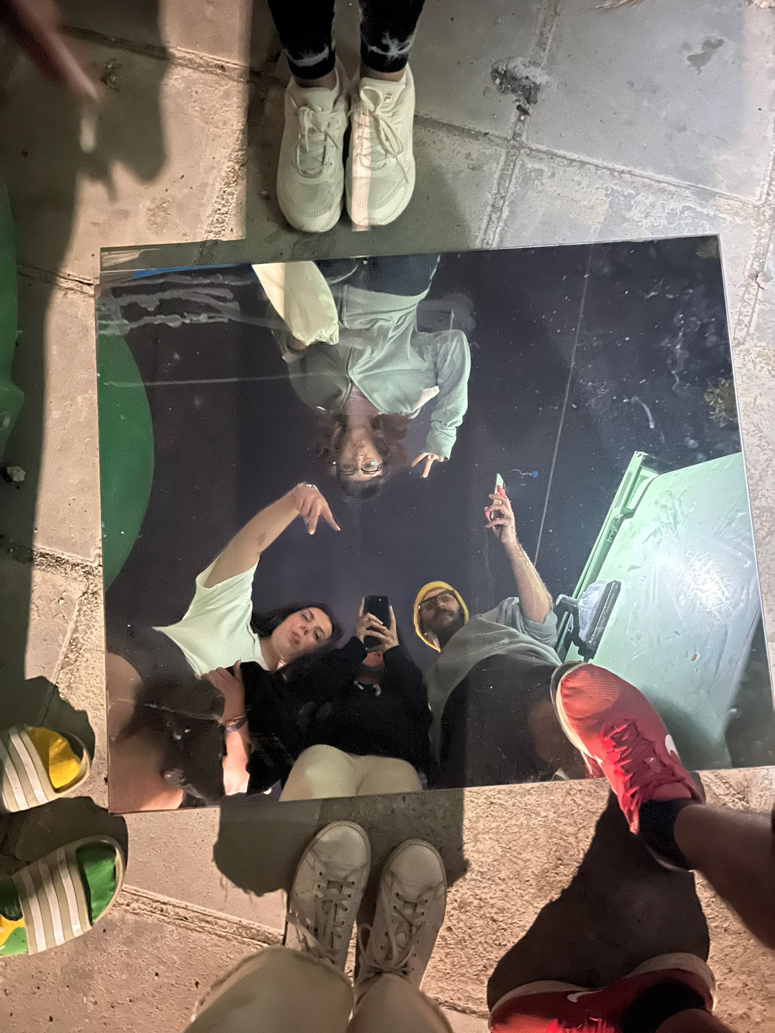 Hoje começámos o dia com muita energia com uma manhã criativa com exercício proporcionados pelos tutores após isso realizámos uma atividade com o objetivo de Conexão com a natureza que foi bastante criativa porque tínhamos de fechar os olhos e confiar na pessoa que nos guiava e nos podia guiar por diferentes tipos de ambientes.
